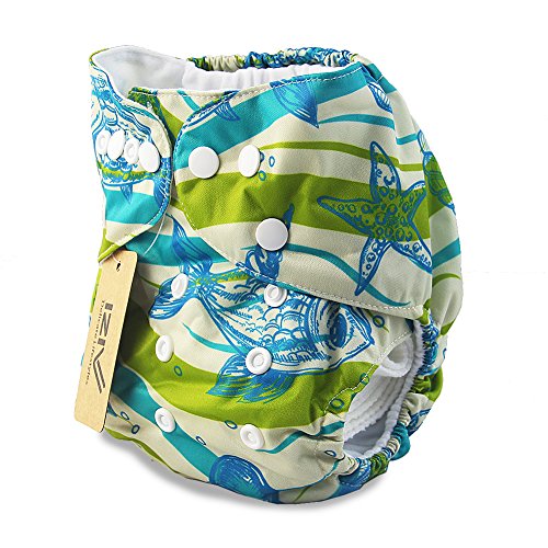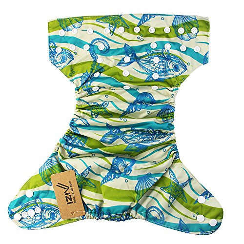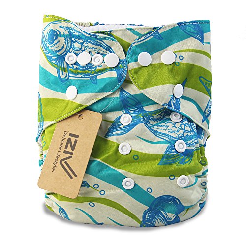 iZiv新生児1厚いおむつ付きオーガニック幼児防水/調整/再利用可能/洗えるポケット布おむつのフィット赤ちゃん0.5-3歳(魚)