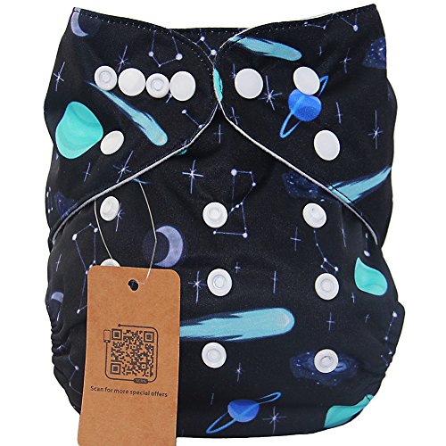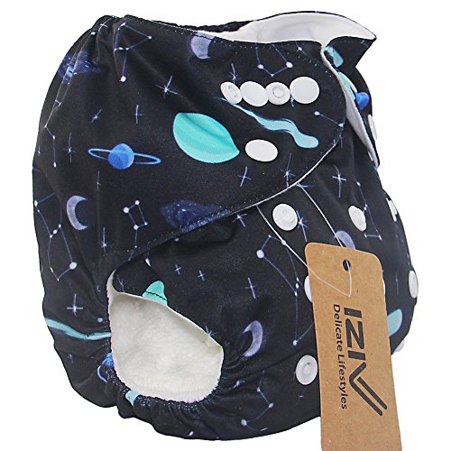 iZiv新生児1厚いおむつ付きオーガニック幼児防水/調整/再利用可能/洗えるポケット布おむつのフィット赤ちゃん0.5-3歳(メテオ)