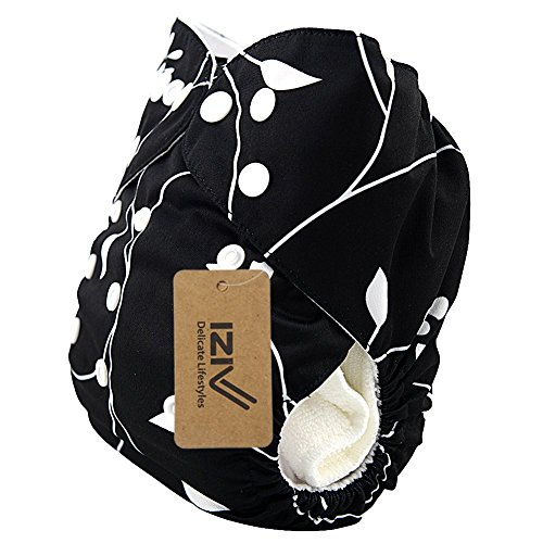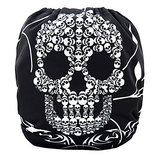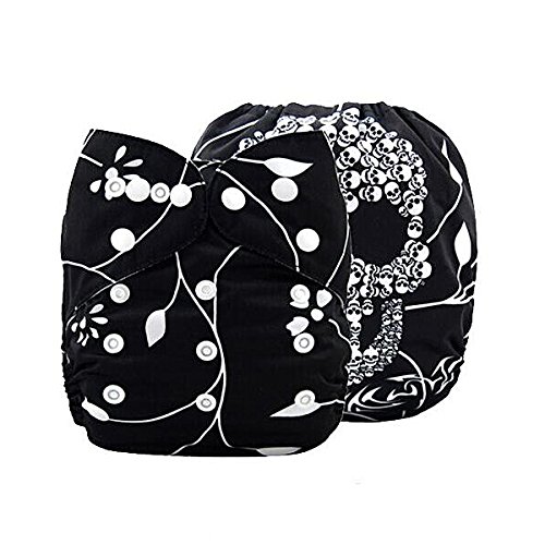 iZiv新生児1厚いおむつ付きオーガニック幼児防水/調整/再利用可能/洗えるポケット布おむつのフィット赤ちゃん0.5-3歳(ブラックスカル)