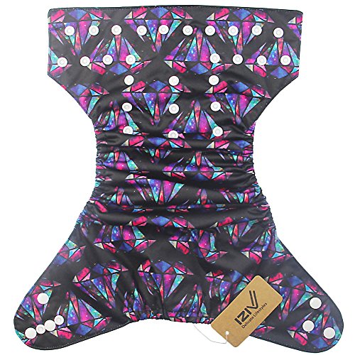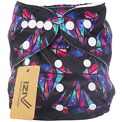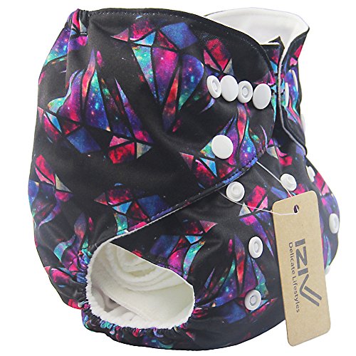 iZiv新生児1厚いおむつ付きオーガニック幼児防水/調整/再利用可能/洗えるポケット布おむつのフィット赤ちゃん0.5-3歳(ブラックスカル)