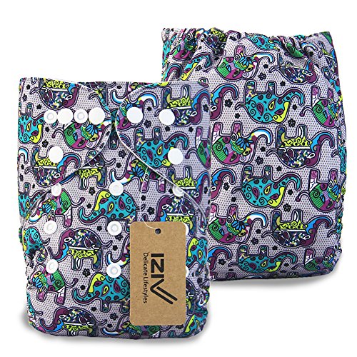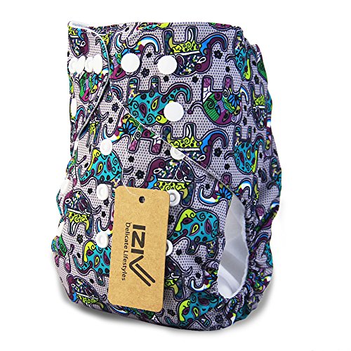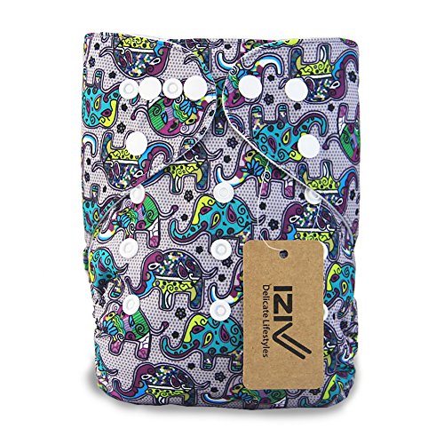 iZiv新生児1厚いおむつ付きオーガニック幼児防水/調整/再利用可能/洗えるポケット布おむつのフィット赤ちゃん0.5-3歳(インドゾウ)