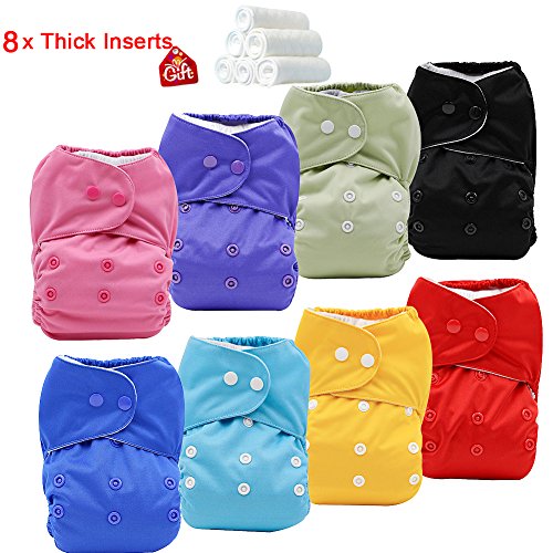 iZiv新生児8厚いおむつ付きオーガニック幼児防水/調整/再利用可能/洗えるポケット布おむつのフィット赤ちゃん0.5-3歳(カラー 6)