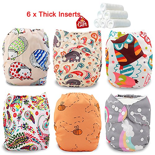 iZiv新生児6厚いおむつ付きオーガニック幼児防水/調整/再利用可能/洗えるポケット布おむつのフィット赤ちゃん0.5-3歳(カラー 6)