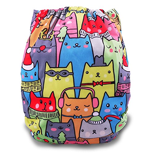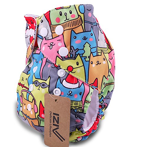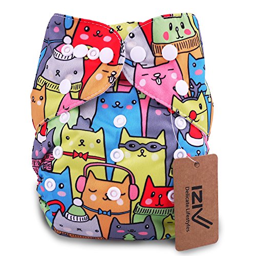 iZiv新生児1厚いおむつ付きオーガニック幼児防水/調整/再利用可能/洗えるポケット布おむつのフィット赤ちゃん0.5-3歳(ネコ)