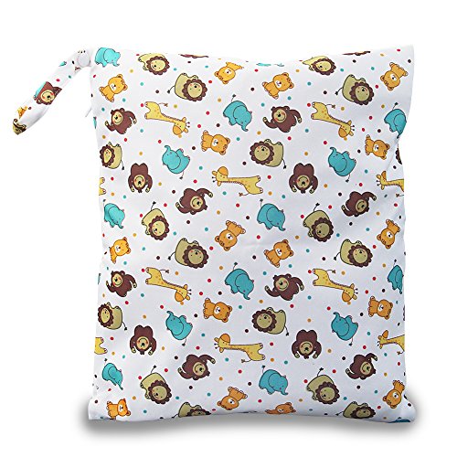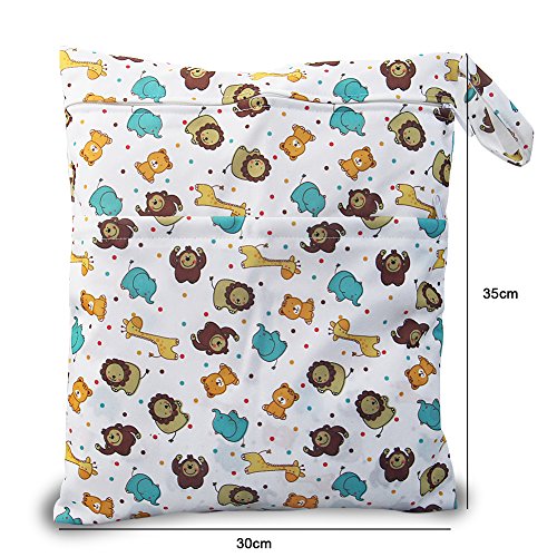 iZivベビー防水再利用可能 ウェットとドライ おむつバッグポーチダブルジッパー印刷おむつ袋(動物)