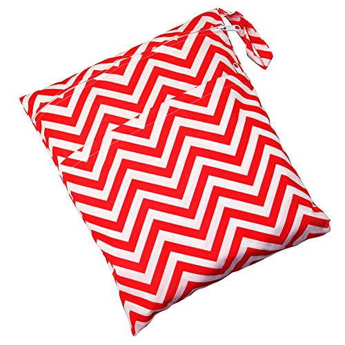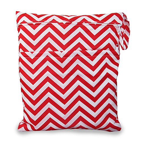 iZivベビー防水再利用可能 ウェットとドライ おむつバッグポーチダブルジッパー印刷おむつ袋(レッド)