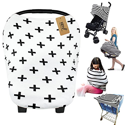 iZivウルトラソフト4-in-1マルチユースベビーストレッチカバーカーシートキャノピー/看護カバー/ショッピングカートカバー/インフィニティスカーフベビー用パーフェクトギフト(カラー1)