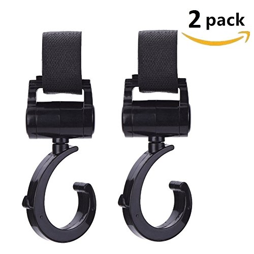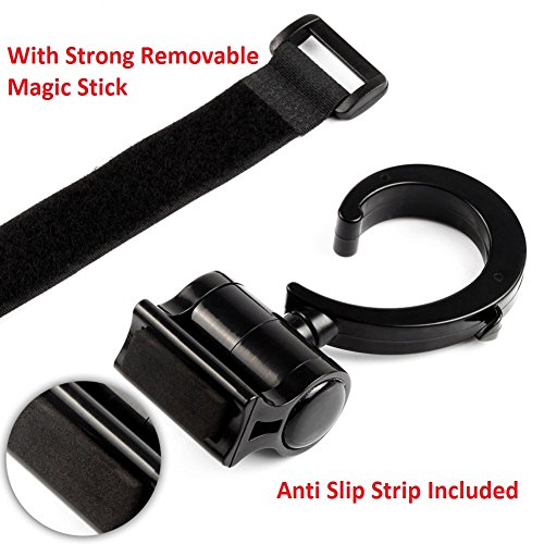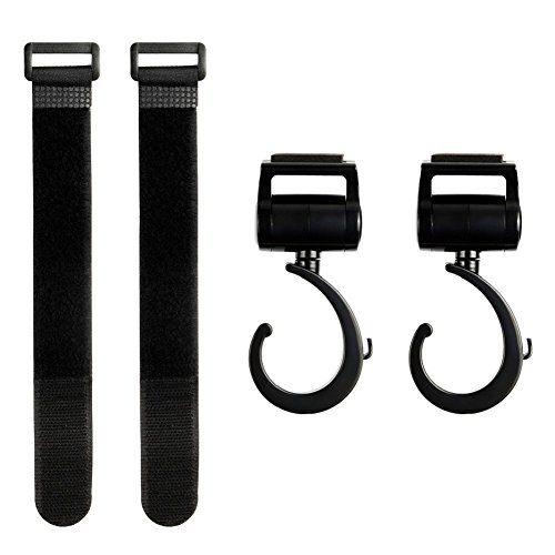 iZiv ベビーカーフック 自転車のハンドルやスーツケースにも使える マルチフック 360度可動 2個セット マジックテープ式 (ブラック)