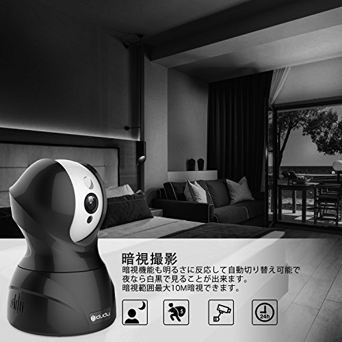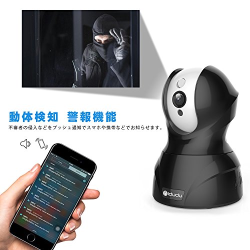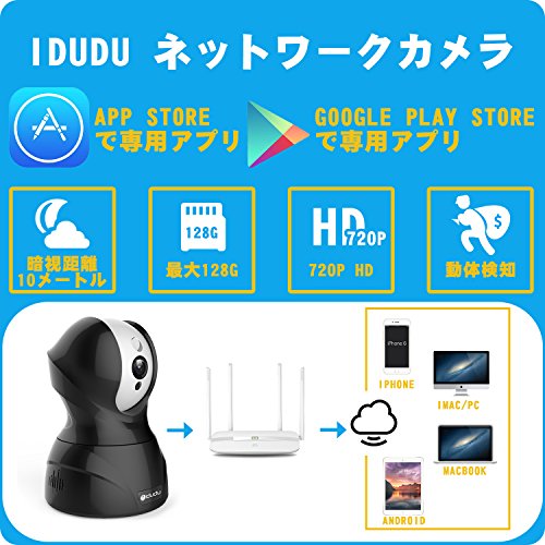 防犯カメラ・監視カメラ iDudu ネットワークカメラ ベビーモニター 720P 100万画素 双方向音声・暗視撮影・マイク内蔵・スマホ/Pad/PC対応 (001, ブラック)
