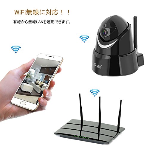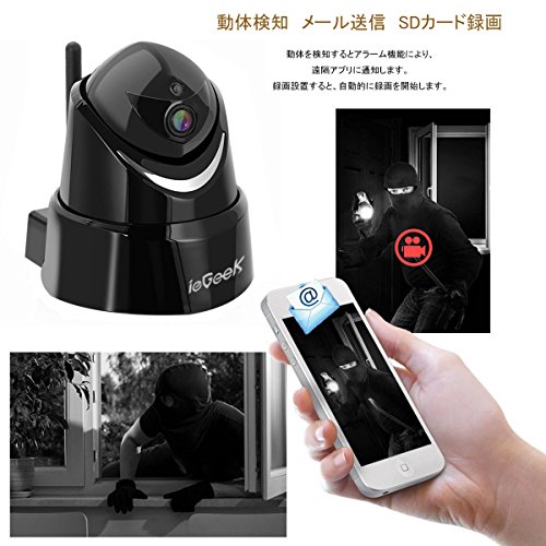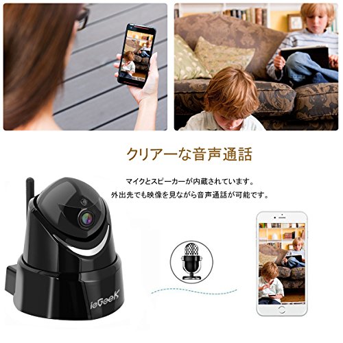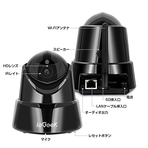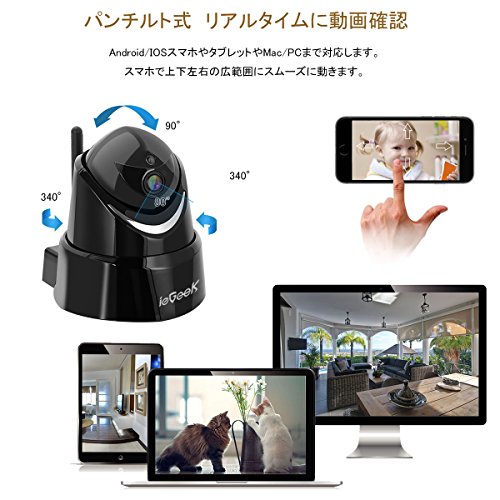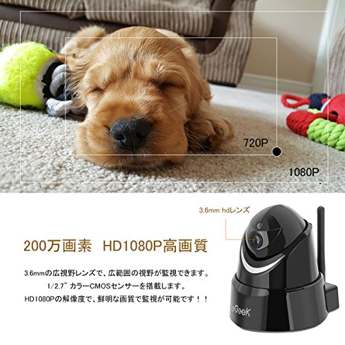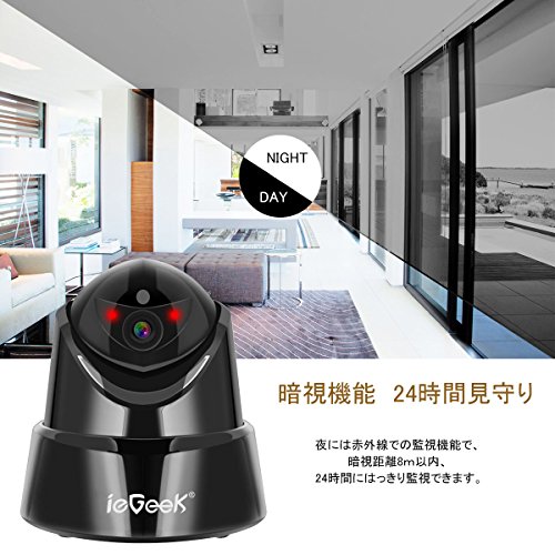 ieGeek ペット 監視カメラ ネットワークカメラ 200万画素 ベビーカメラ 見守り ワイヤレスipカメラ 留守 スマホ対応 p2p sdカード 録画 音声 暗視 介護 日本語説明書付き 2年保証 技適 黒