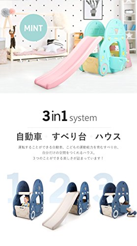 ifam 室内滑り台・車・ハウスの3WAY遊具 (ミント)