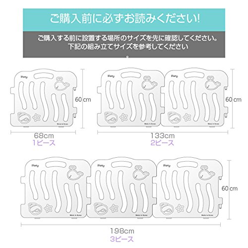 【警告 正しくご使用ください】 ・お子様がパネルの隙間に無理やりに手足を入れる様な場合は、ご使用をお控えください。 手足が挟まり抜けなくなる場合がございます。 ・お子様がパネルに登れるようになるなど、お子様の成長度合いにより危険になる場合があります。 保護者の方の判断で、使用を中止してください。 ・パネルが外れたり破損の原因となる為、パネルにぶら下がったり身体をぶつけたりなど、衝撃を与えないでください。 ・サークルの中や付近に、踏み台になるような物を置かないでください。 【ご使用上の注意】 ・本製品の組み立て、設置は、必ず保護者の方が正しく行ってください。 ・必ず保護者のもとでご使用し、お子様の行動には十分ご注意ください。 お子様がパネルに登って転落するなど、事故につながるおそれがございます。 ・パネル本体や部品が破損したら、ただちにご使用を中止してください。 このサークルは様々な形(四角形・五角形・六角形など)でご使用いただけるため、安全性をふまえ接続部分はきつめに作られております。少々きつく感じる場合でもきちんと根本まで押し込んだ上、正しくご使用下さい.
