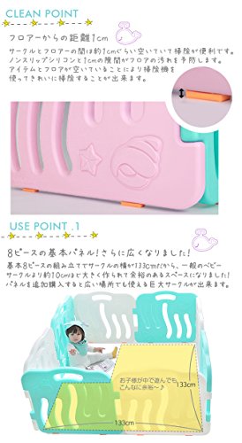 【警告 正しくご使用ください】 ・お子様がパネルの隙間に無理やりに手足を入れる様な場合は、ご使用をお控えください。 手足が挟まり抜けなくなる場合がございます。 ・お子様がパネルに登れるようになるなど、お子様の成長度合いにより危険になる場合があります。 保護者の方の判断で、使用を中止してください。 ・パネルが外れたり破損の原因となる為、パネルにぶら下がったり身体をぶつけたりなど、衝撃を与えないでください。 ・サークルの中や付近に、踏み台になるような物を置かないでください。 【ご使用上の注意】 ・本製品の組み立て、設置は、必ず保護者の方が正しく行ってください。 ・必ず保護者のもとでご使用し、お子様の行動には十分ご注意ください。 お子様がパネルに登って転落するなど、事故につながるおそれがございます。 ・パネル本体や部品が破損したら、ただちにご使用を中止してください。 このサークルは様々な形(四角形・五角形・六角形など)でご使用いただけるため、安全性をふまえ接続部分はきつめに作られております。少々きつく感じる場合でもきちんと根本まで押し込んだ上、正しくご使用下さい.