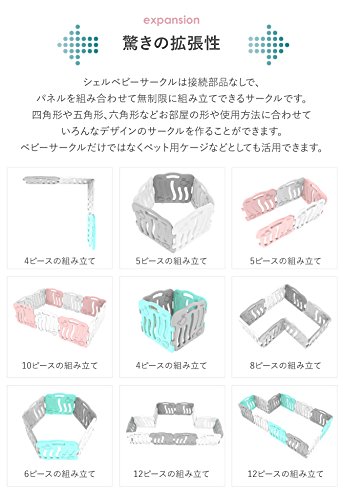 ※グレー4枚・ホワイト4枚の8枚セットです※ シェルベビーサークル。組み合わせ次第で無制限の空間を作る事が出来ます! 爽やかな、トレンドのパステルカラーでインテリア性もGOOD!