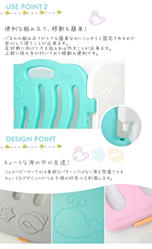 - くじらや貝殻などをモチーフにしたお洒落なベビーサークル。