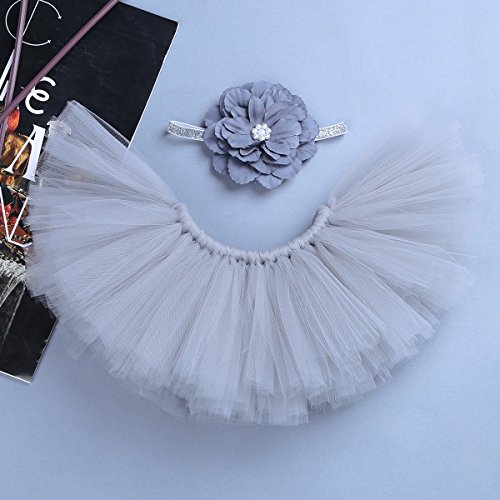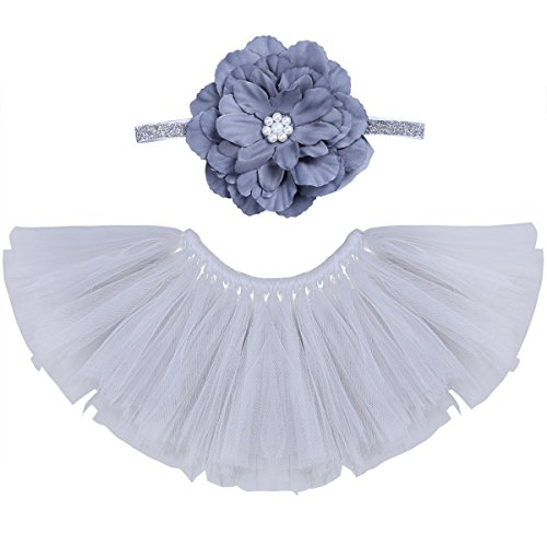 (アイム)iiniim 赤ちゃん ベビー 可愛い コスチューム 着ぐるみ 衣装 新生児用 おくるみ 記念写真小道具 チュチュ ふわふわ お食い初め 記念撮影 寝相アート ヘアバンド+チュチュスカートセット グレー ワンサイズ