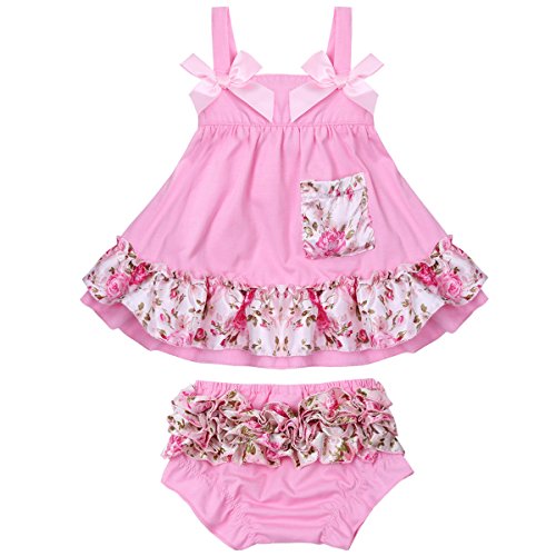 (アイム)iiniim ベビー キャミソール スカート ポケット付 可愛い フリルデザイン 祝い プレゼント 誕生日 パーティー ドレス ショーツ 2点セット ピンク タグ:L 推薦年齢:9-12月