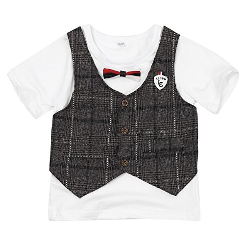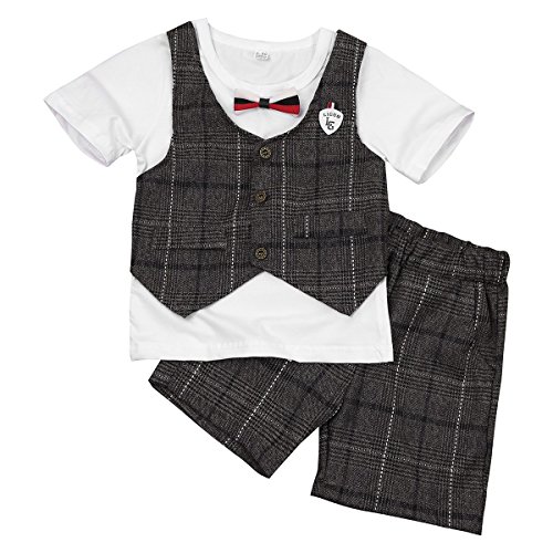 (アイム)iiniim ボーイズ ベビー服 チェックシャツ 紳士 蝶ネクタイ チェック柄 Tシャツ+ショーツ フォーマル 子供服 正式 パーティー 結婚式 2点セット 2点セット タグ:130 推薦年齢:6-7歳