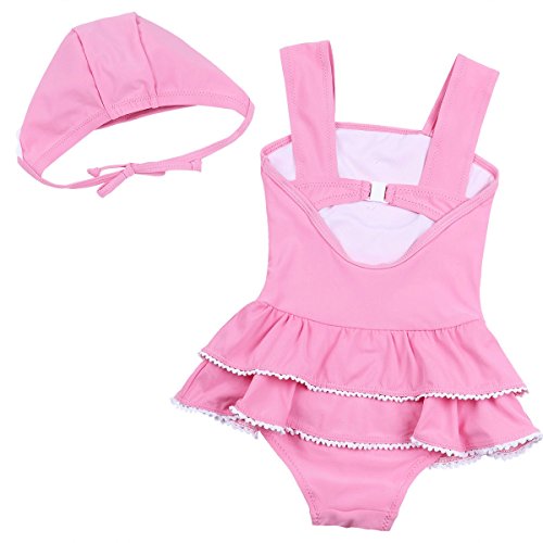 (アイム)iiniim ベビー ガールズ 連体 水着 キッズ 子供 ワンピースタイプ レース スイムウェア スイムスーツ キャップ付 1-6歳適用 ピンク 6
