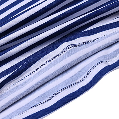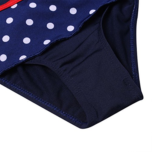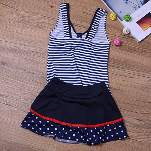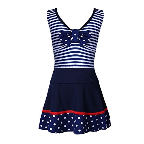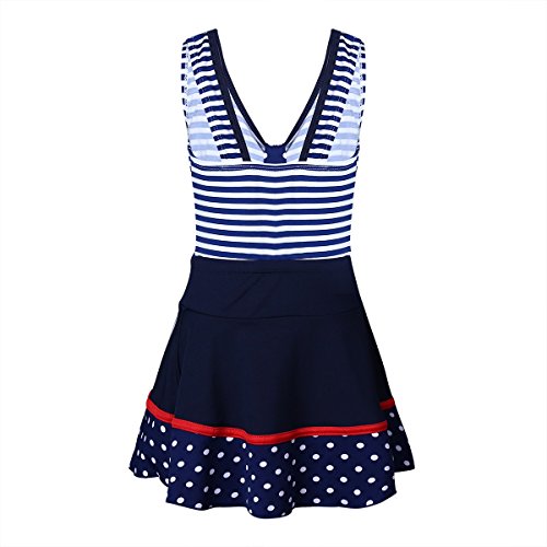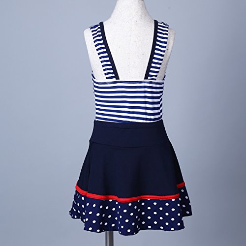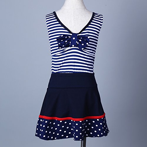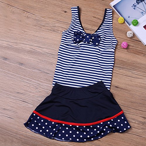 (アイム)iiniim ガールズ スイムウェア 縞模様 スイムスーツ タンキニ キッズ用 スカート付 ネービーブルー 2XL