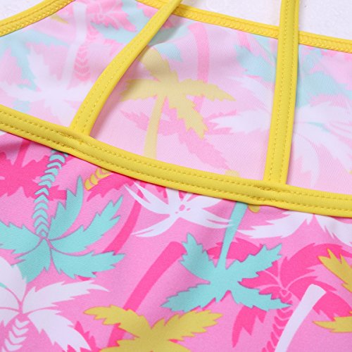 (アイム)iiniim ガールズ 水着 女の子 スイムスーツ タンキニ 連体 キッズ用 スイムウェア 葉柄 UVカット キャミ型 子供用水泳服 イエロー タグ:8A キッズサイズ:8