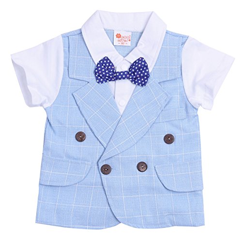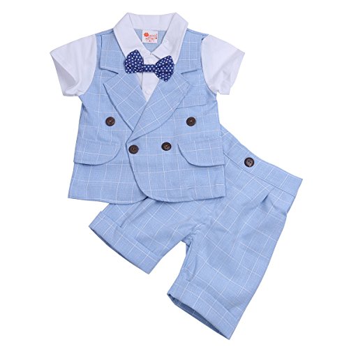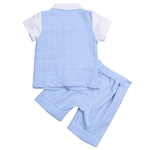 (アイム)iiniim ボーイズ チェックシャツ 紳士 蝶ネクタイ チェック柄 Tシャツ+ショーツ フォーマル 子供服 2点セット 青い 100