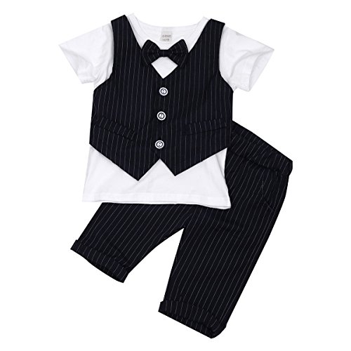(アイム)iiniim ボーイズ ベビー服 チェックシャツ 紳士 蝶ネクタイ チェック柄 Tシャツ+ショーツ フォーマル 子供服 正式 パーティー 結婚式 2点セット ブラック タグ:110 推薦年齢:3-4歳
