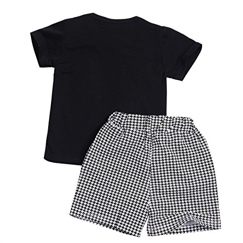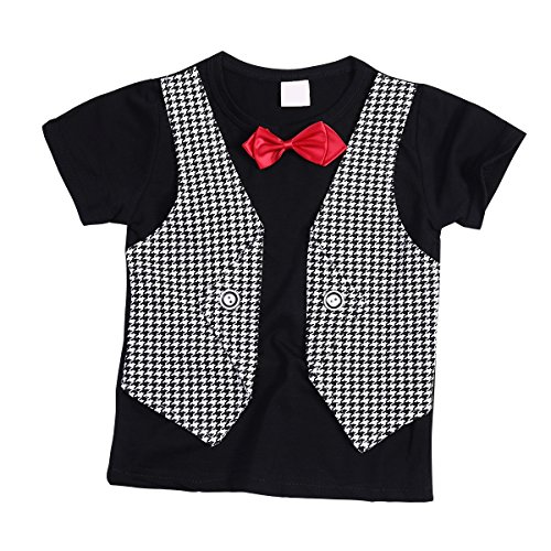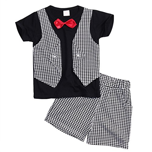 (アイム)iiniim ボーイズ ベビー服 チェックシャツ 紳士 蝶ネクタイ チェック柄 Tシャツ+ショーツ フォーマル 子供服 正式 パーティー 結婚式 2点セット ブラック タグ:XL 推薦年齢:3-4歳
