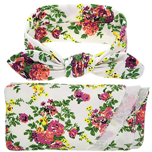 (アイム)iiniim ベビー ラップ 赤ちゃん フリース 寝袋 おくるみ ブランケット 新生児 着る毛布 コットン 暖かい 睡眠袋 幼児 花柄 ヘッドバンド付 3色 ホワイト ワンサイズ