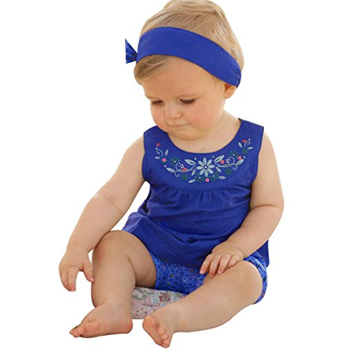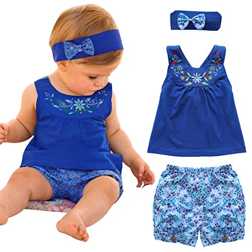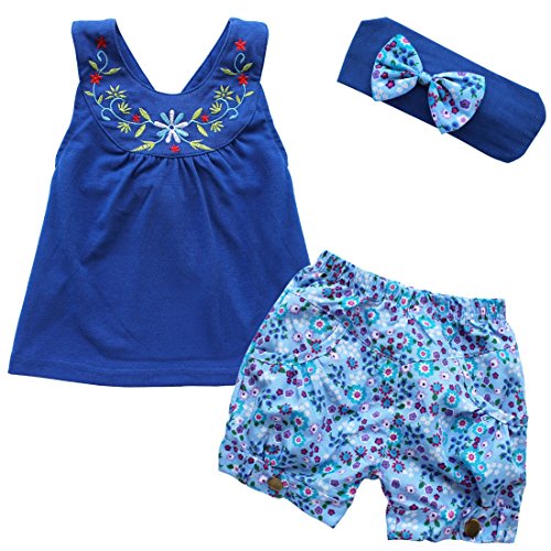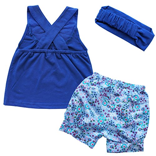 (アイム)iiniim 赤ちゃん 女の子ブルーTシャツノースリーブトップス+ショートパンツ+頭飾りの花スリーピース3点セット 遊び着セット フラワー衣装 コスチューム衣装グッズ新生児用 子供服 夏秋着 サイズ3-24 Months ブルー 100
