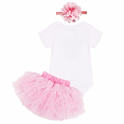 (アイム)iiniim ベビーガールズ半袖ロンパース トップス+チュチュスカート+ヘッドバンド3点セット 赤ちゃん誕生日ロンパース カチューシャ衣装半袖ロンパース子供スカートスーツリボン付き 0-12 Monthsベビー3スタイル ホワイト2 M