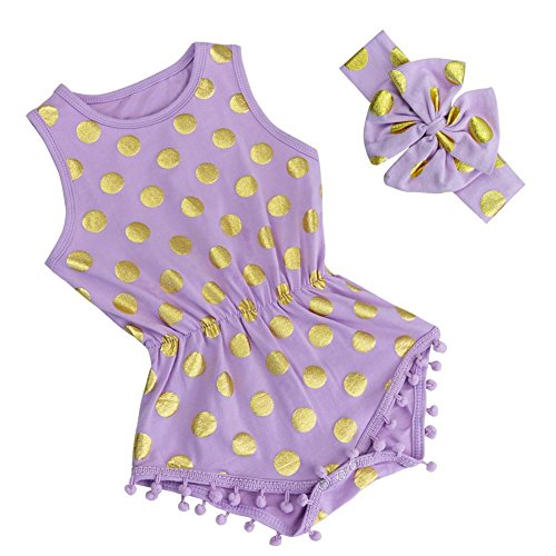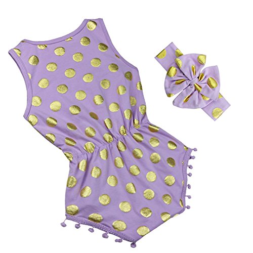 (アイム)iiniim 女の子ポルカドットレオタード 幼児女の赤ちゃんワンピースノースリーブ水玉夏ロンパースヘッドバンド2点セット ヘアバンド付き 蝶ヘッドバンド 超可愛い 記念撮影道具 寝相アート出産お祝い退院プレゼント サイズ 0-24 Months 6色 パープル S