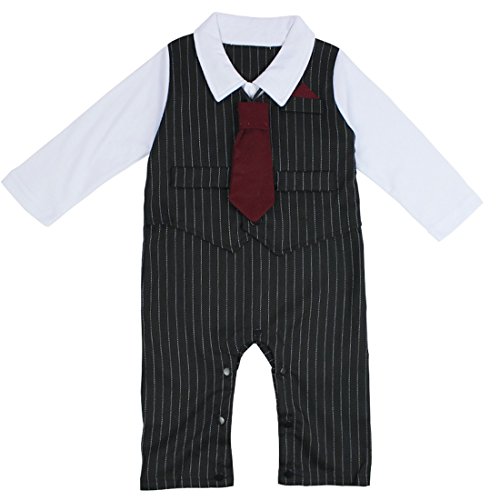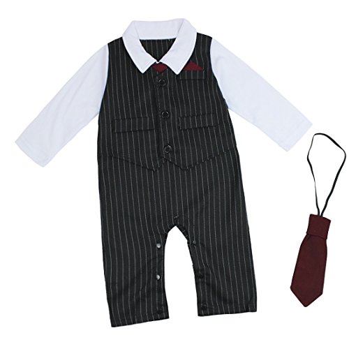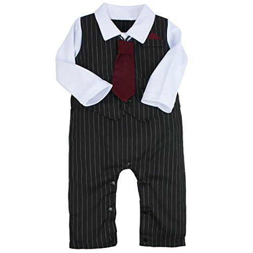 (アイム)iiniim 男児紳士ネクタイロンパースベビー服 赤ちゃん服タキシード 長袖カバーオールベビー服赤ちゃん服誕生日ブラックパンツベビーフォーマル服ベビーお誕生日 写真撮影発表会ボディースーツ 一体式 ブラック 80