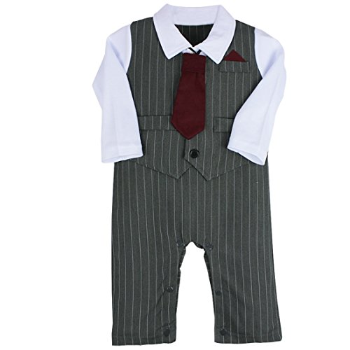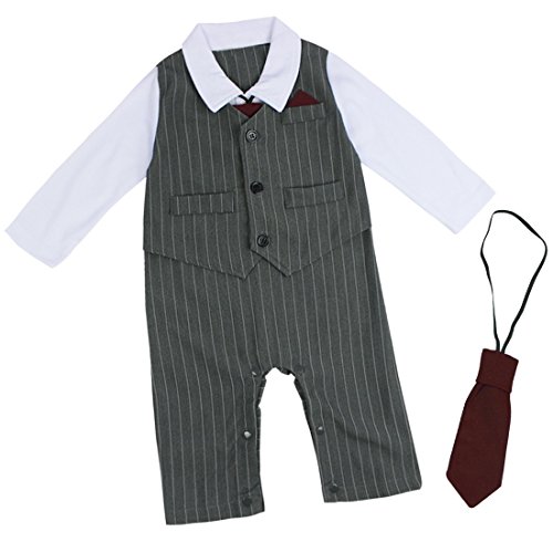 (アイム)iiniim 男児紳士ネクタイロンパースベビー服 赤ちゃん服タキシード 長袖カバーオールベビー服赤ちゃん服誕生日ブラックパンツベビーフォーマル服ベビーお誕生日 写真撮影発表会ボディースーツ 一体式 グレイ 90
