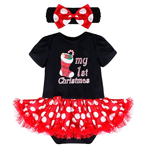 (アイム)iiniim 女児ベビー ロンパース 水玉模様ヘッドバンド付き クリスマス赤ちゃん服 仮装 コスチューム イベント 日常身なり パーティー 結婚式 お誕生日 写真 記念日 0-3/3-6/6-9/9-12ヶ月 クリスマスブラック #L