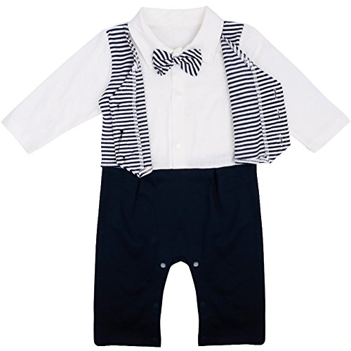 (アイム)iiniim 男児ベビー紳士ロンパースベビー服 長袖タキシード 燕尾コート付き ストライプ 蝶ネクタイ 赤ちゃん服 誕生日 ベビーフォーマル服 お誕生日 日常身なり パーティー 結婚式 お誕生日 写真 記念日 #70?95 黒い及び白い #80