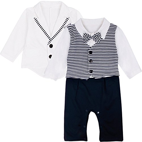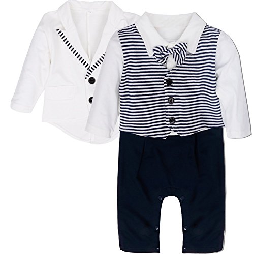 - この赤ちゃんの男の子のロンパースは、長袖タキシードでコートも付いています。着いてみて、小紳士のような可愛い赤ちゃんになります