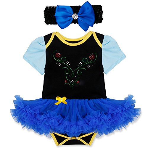 (アイム)iiniim 女児ベビーロンパース 半袖 蝶結び ヘッドバンド付き ラインストーン クリスマス 赤ちゃん服 サンタクロース 魔女風 仮装 コスチューム イベント 日常身なり パーティー 写真 記念日 0-3/3-6/6-9/9-12ヶ月 ブラックとブルー #XL