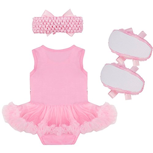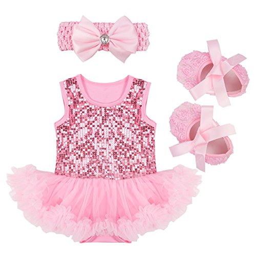 (アイム)iiniim 女児ベビーロンパース 袖なし スパンコール付き ロンパース+蝶結びヘッドバンド+靴3点セット チュチュ 弾性 ベスト イベント 日常身なり パーティー S/M/L/XL 2色 ピンク #S