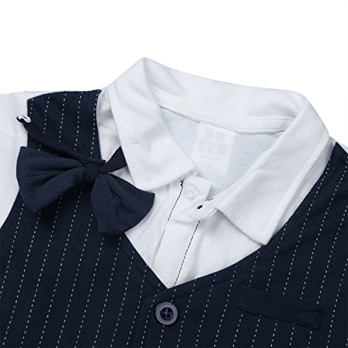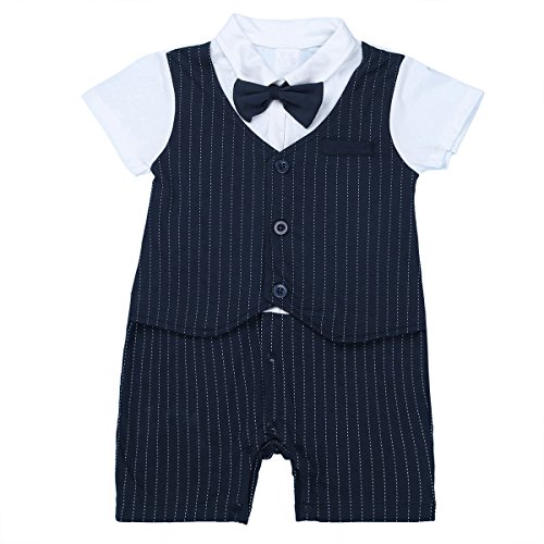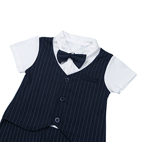 (アイム)iiniim ベビー 連体 ロンパース 短袖 フォーマル 子供服 カバーオール ベビースーツ ボーイズ 紳士 蝶ネクタイ 新生児 シャツ ネービー 80