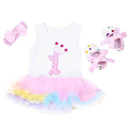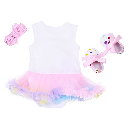 (アイム)iiniim 女児 ベビー ロンパース 可愛い ロンパース+蝶結びヘッドバンド+靴3点セット チュチュ 弾性 ベスト イベント 日常身なり パーティー 誕生日 撮影道具 3点セット-2 S