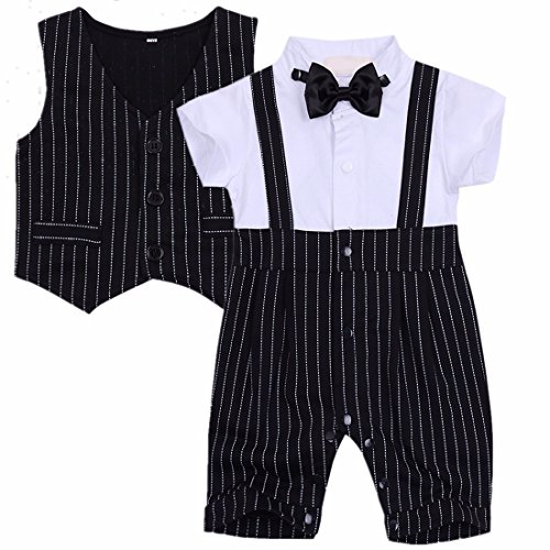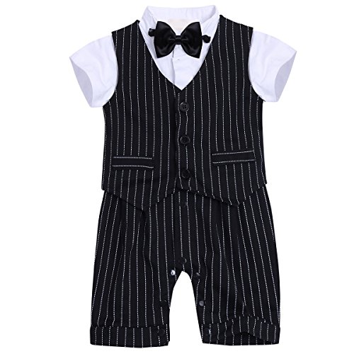 (アイム)iiniim ベビー 短袖 フォーマル ロンパース 蝶ネクタイ 紳士 カバーオール 子供スーツ 新生児 連体服 ロンパース+ベスト2点セット 2点セット 90