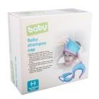 - もうシャンプーが怖くない!顔に水がかからない、フリーサイズのシャンプーハット。