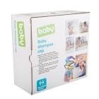 - 泡を流す時、すすいだ水はバスバイザーの流れに沿って首の後に流れます。よくあるシャンプーハットのように、四方八方に流れてベビーを怯えさせることがありません。
