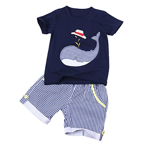 (アイム)iiniim キッズ 鯨柄 シャツ ショット パンツ ボーイズ 子供服 コットン 通気 2点セット 2点セット 3