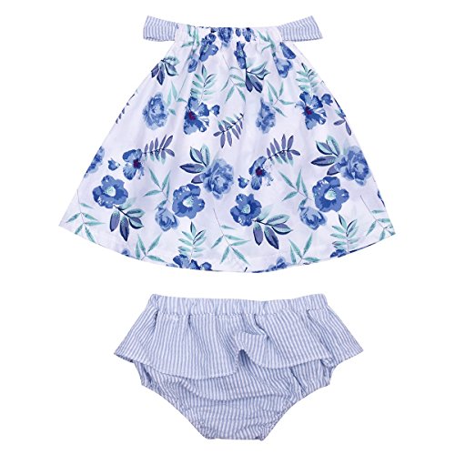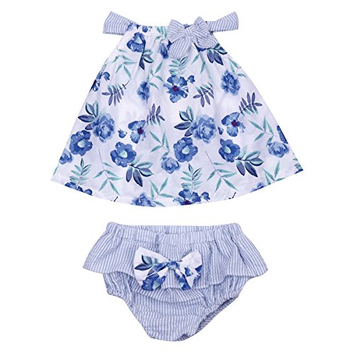 (アイム)iiniim ガールズ 花プリン トップス+ニッカボッカ2点セット 夏服 蝶結び 可愛い 子供服 カジュアル 薄地 通気 ベビー用 ブルー タグ:11 推薦年齢:9-12月