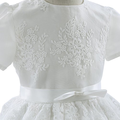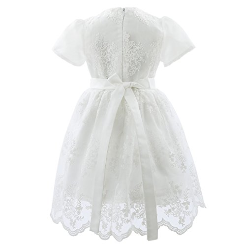 (アイム)iiniim ベビー ドレス キッズ ワンピース チュチュ ガールズ フォーマル メッシュ フワフワ スカート 幼児服 新生児 お洒落 赤ちゃん 誕生日ギフト プリンセス お姫様 ショートスリーブ 刺繍 アイボリー 60