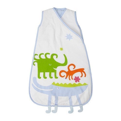 Length: 28 ? Width: 17 3/8 Filling weight: 2 oz Total weight: 9 oz;Recommended for ages 0-6 months. Avoid using the wearable blanket with additional bedding. This product is relatively warm and is suitable for use in a room with a temperature of approx. 61-69?F.;Fabric: 100 % cotton Filling material: 100 % polyester