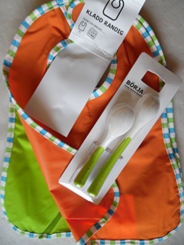 Ikea's Baby Gift Set: 2 Kladd Randig Bib, Green, Orange & Borja 2 Spoons 2 Items Bundle by IKEA
