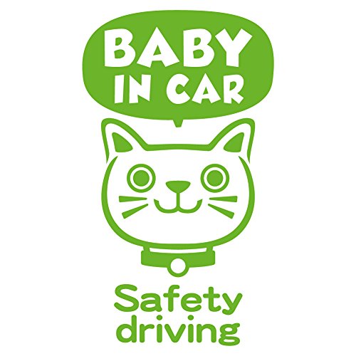 imoninn BABY in car ステッカー 【シンプル版】 No.59 ネコさん2 (黄緑色)